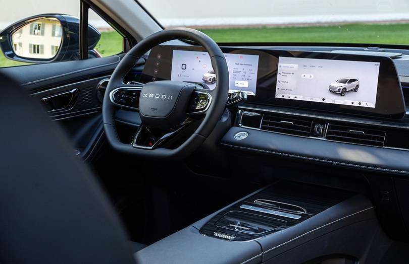 Interni della nuova Omoda 4, caratterizzati da un design minimalista con doppio display panoramico, materiali soft-touch e illuminazione ambientale a LED che valorizza l’abitacolo futurista.